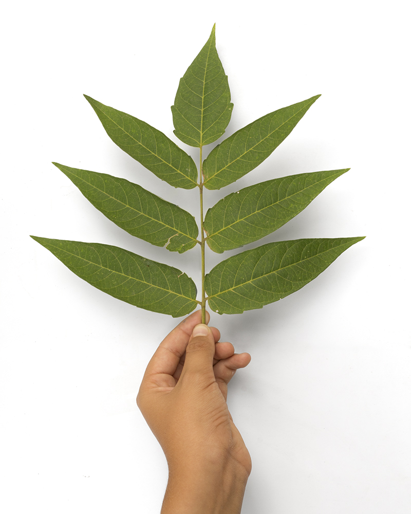 Voilà l’une des plantes les plus répandues aux marges, sur les friches, les bas-côtés. Il s’agit d’une plante déterminée qui se contente de peu : mauvais sol et peu d’eau lui conviennent. Aussi la trouve-t-on au pied des murs, et le long des autoroutes. Sa forme physique rappelle sa détermination : une régularité sans faille de l’implantation de ses feuilles, très légèrement alternées le long d’une tige droite. Ses longues feuilles pointues sont d’apparence si banale que l’ailante marque peu la mémoire, enfin sauf celle du jardinier qui aimerait qu’elle aille persister ailleurs. Pour peu qu’on la laisse tranquille, la petite pousse discrète peut gentiment devenir un arbre qui atteint 30 m de hauteur, comme son nom latin le suggère.