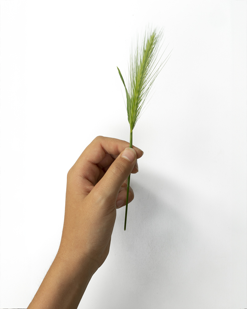 Cet épis évoque toute l’histoire de la civilisation occidentale. Car c’est notamment avec la culture des graminées que le chasseur-cueilleur a pu progressivement ralentir, avant de s’arrêter tout à fait et de se sédentariser. Avec l’épis, naît l’agriculture il y a plus de 10 000 ans au Moyen-Orient, avant de se répandre, notamment en Europe. En conséquence, l’épis représente aussi la base de la cuisine de cette région, encore aujourd’hui. Depuis la baguette de pain jusqu’à la pizza, en passant par l’infinie variété des pâtes. Cependant cet épis ci n’est pas un épis de blé, mais son cousin lointain l’orge des rats, souvent mal aimé (ça arrive parfois avec les cousins lointains). S’il est tout aussi comestible, ses graines sont trop petites pour intéresser la rentabilité attendue par l’agriculture contemporaine. En dépit de l’élégance de son dessin, on l’ignore. Pire, on va jusqu’à le considérer comme “mauvaise herbe” car quand l’orge des rats veut créer une réunion de famille en s’installant dans un champ de blé, on considère qu’il fait baisser le rendement, et on le détruit. C’est ballot.